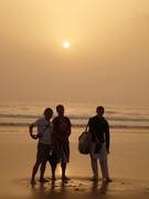 Nicht nur wegen der Wellen ist der Strand echt enspannt: Berber bieten Kamel-Touren an (einmal den Strand hoch und runter), die Jungs spielen Fussball, Ping-Pong, und hey, die kleinen Knirpse auf ihren Short-Boards legen auch ordentliche Stunts hin. Wir sind gestern abend über den Strand zurückgelaufen... und wären da nicht die Locales, die wie Irre auf Squads am Strand heizen, und Grenzposten (?) in bestimmten Abständen mit Marokkoflagge, die Stimmung mit leichtem Nebel, rot schimmernden Fels-Findlingen, und einer Sonne, die einer Perle gleich aus dem Nebel herausscheint...