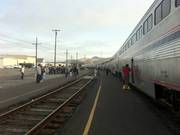 Die Zuege sind jeweils zweistoeckig (WC und Gepaeck unten, Sitze oben), das Reservierungsszstem an Board eine Zettelwirtschaft - der morgendliche Blick aus dem Panorama-Wagen, mitten hinein in den Klamath Falls Nationalpark dafuer unbezahlbar.